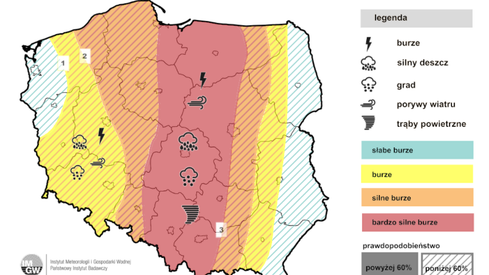 Pierwszy stopień zagrożenia burzami z gradem.